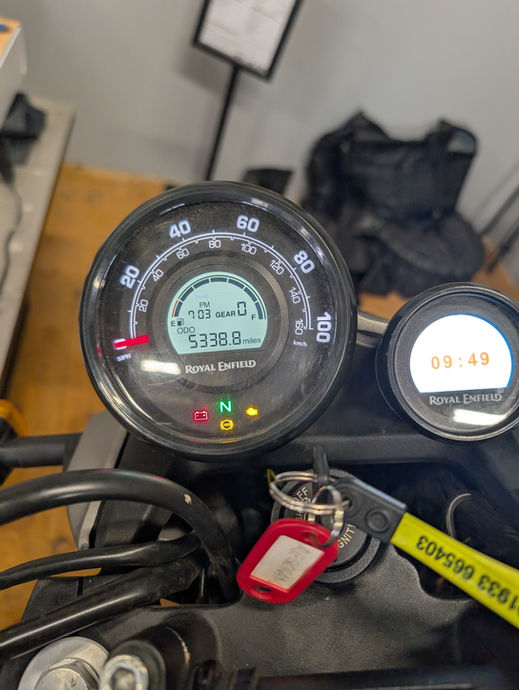 We're selling this Royal Enfield Himalayan Scram, registered in late 2022 but classed as a 2023 model year bike. It has been well cared for and is in excellent condition.